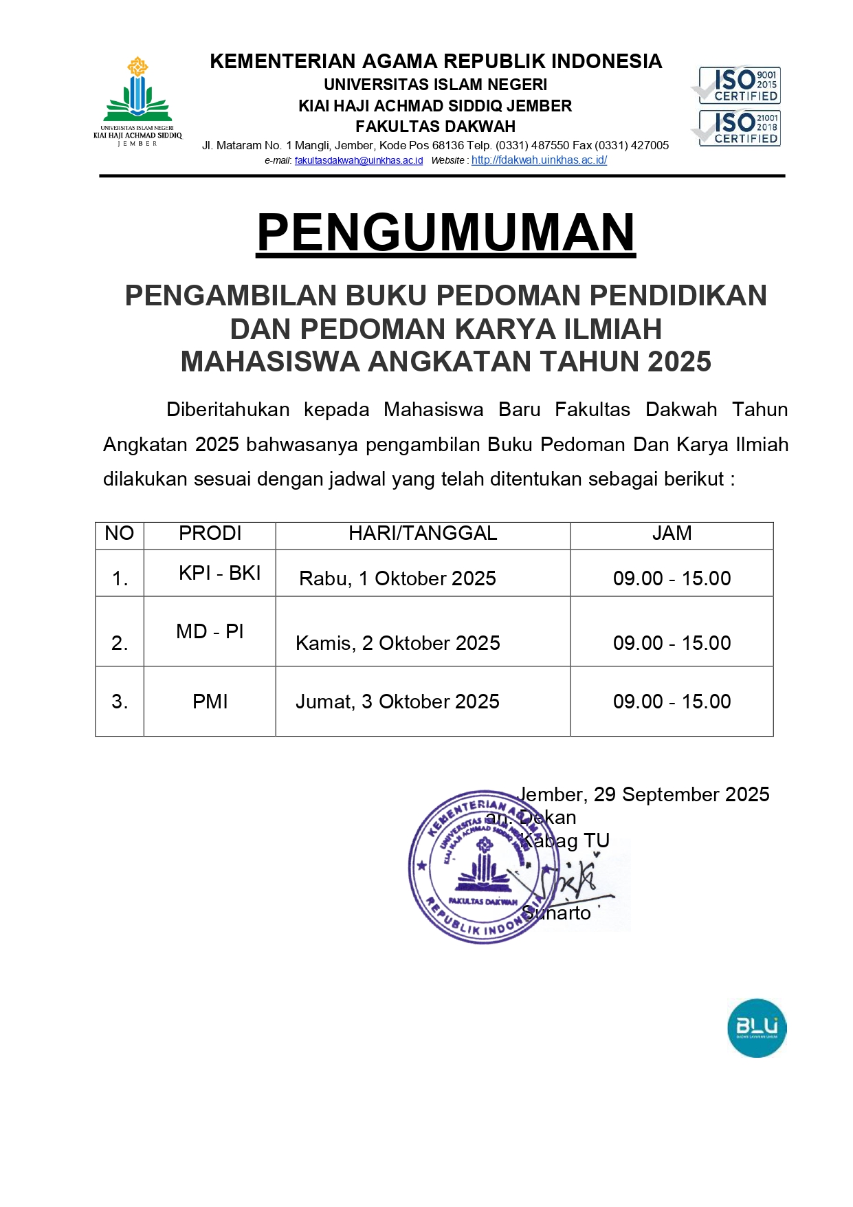 PENGUMUMAN PENGAMBILAN BUKU PEDOMAN PENDIDIKAN DAN KARYA ILMIAH ANGKATAN 2025