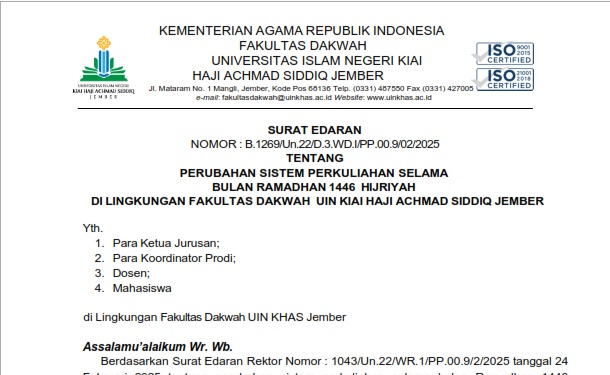 SURAT EDARAN PERUBAHAN SISTEM KULIAH SELAMA BULAN RAMADHAN 1446 H